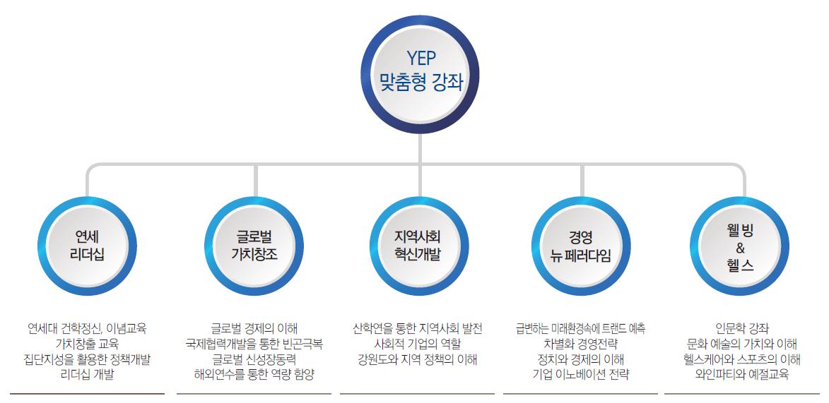 연세대학교 고위자과정(YEP)는 국내외의 정치•경제•교육•경영•행정•환경•보건•법률 등에 대한 제반문제를 체계적으로 분석하고
