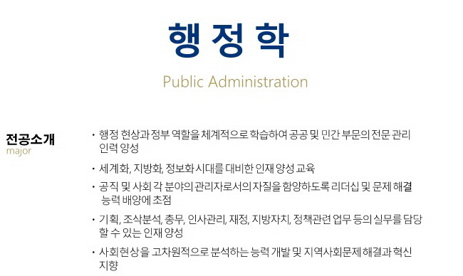 ■ 행정학전공 (해당 교과목은 참고용으로 학기별 변경될 수 있습니다)