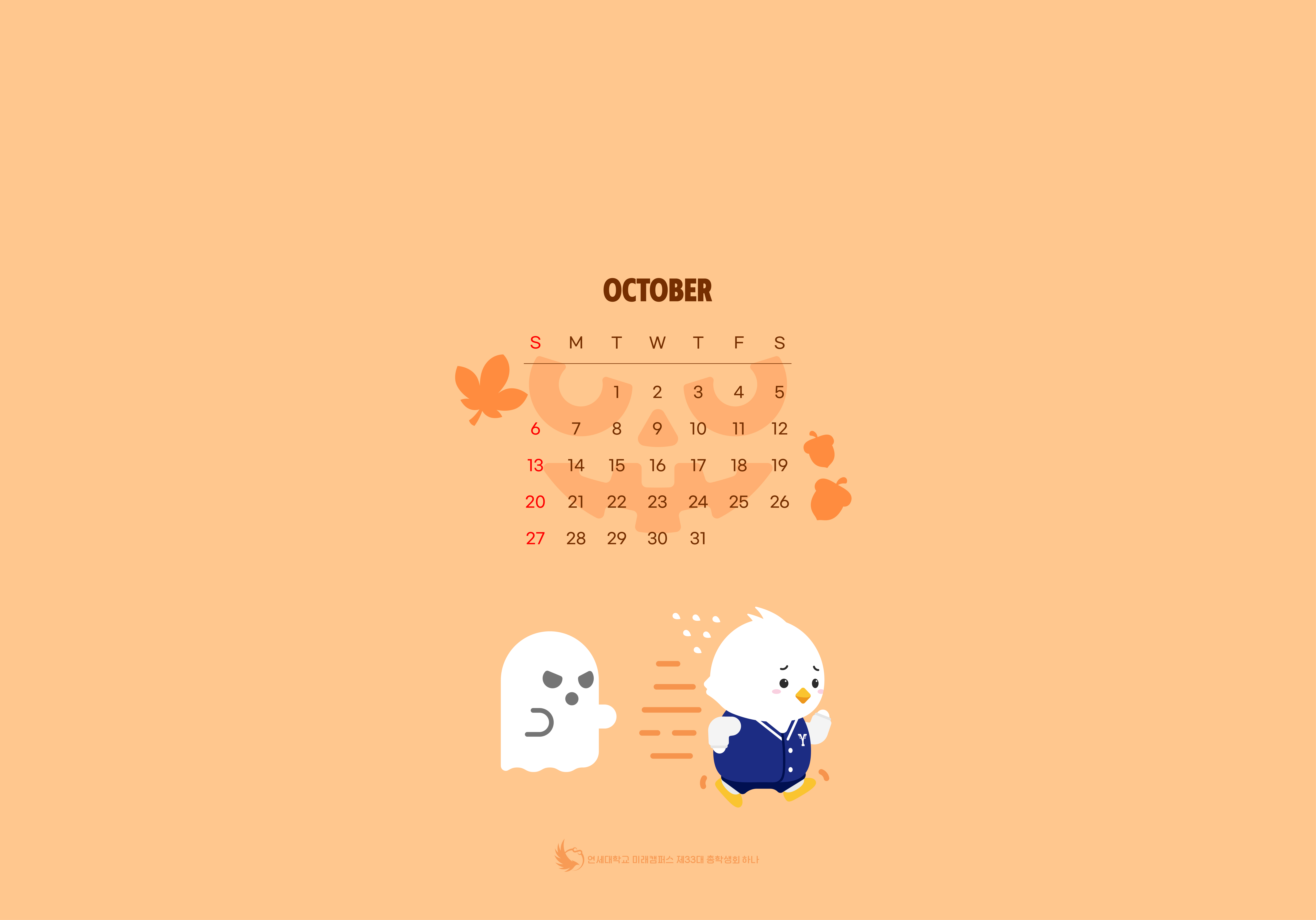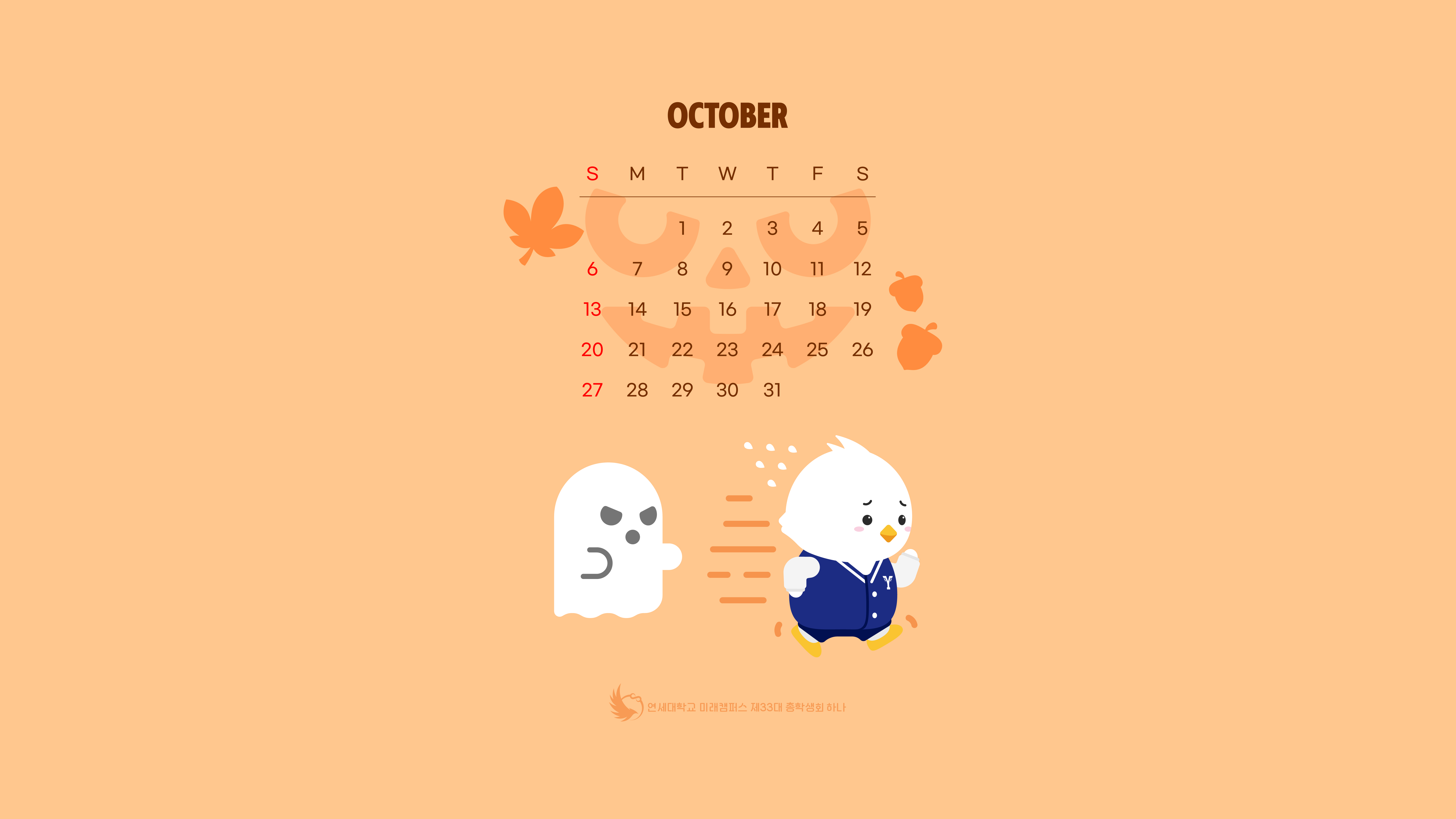학우 여러분 안녕하십니까. 다시 하나로, 연세대학교 미래캠퍼스 제33대 총학생회 <하나>입니다. 10월, 다가온 가을을 맞이하여 두 가지 테마의 아기수리 배경화면을 공유하니 많은 이용 부탁드립니다 🦅 💙 *PC, 태블릿, 모바일 각각 기기에 맞는 버전으로 다운로드하여 사용하시면 됩니다.