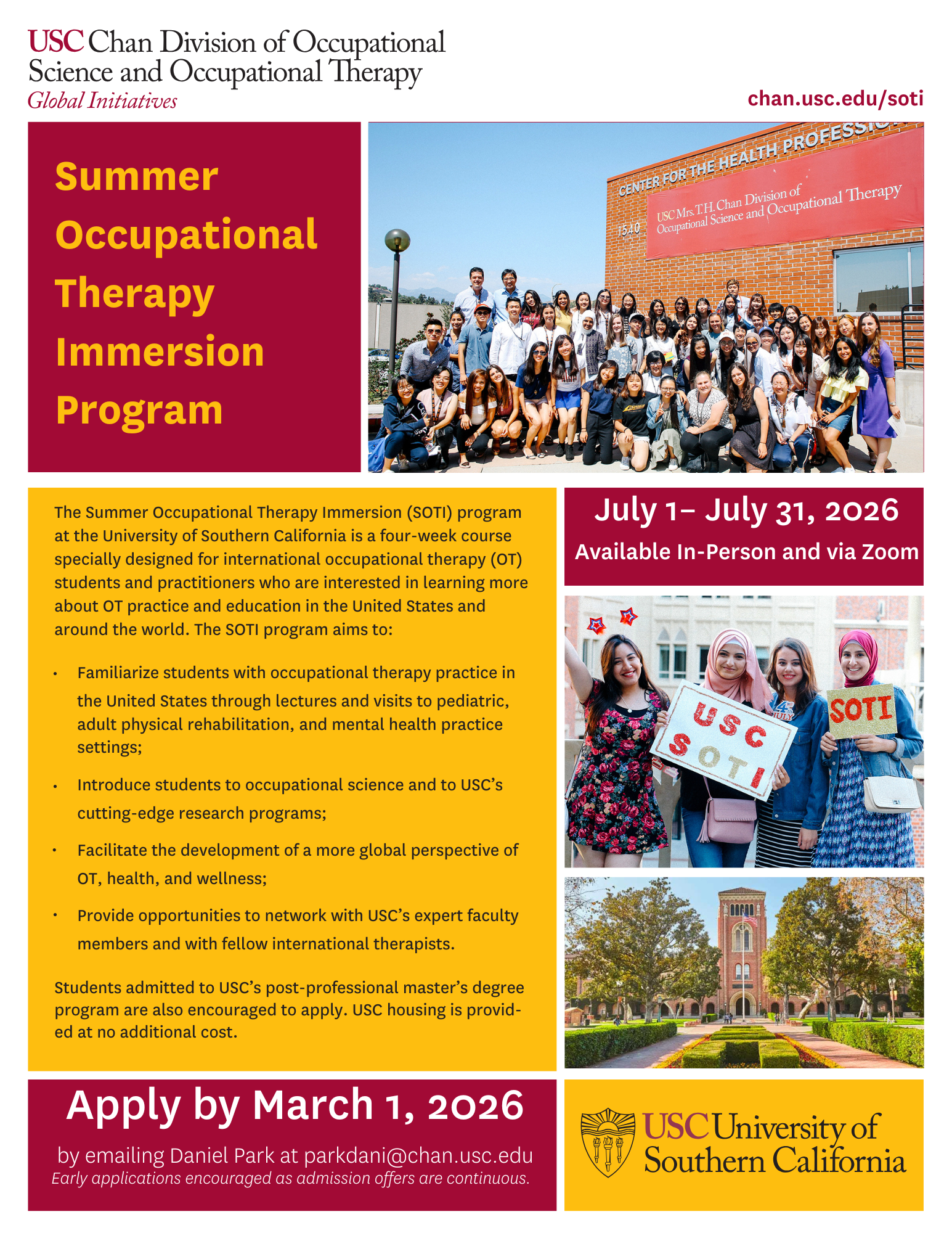 2026 USC Summer Occupational Therapy Immersion (SOTI) 프로그램 안내