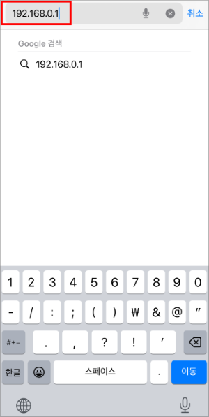 iptime 연결 후, 'SAFARI' 앱 검색창에 '192.168.0.1'을 입력합니다.